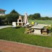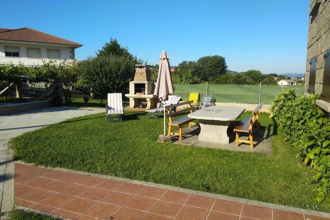 Dispone de una barbacoa con mesa de piedra y bancos para comer al lado de la barbacoa.