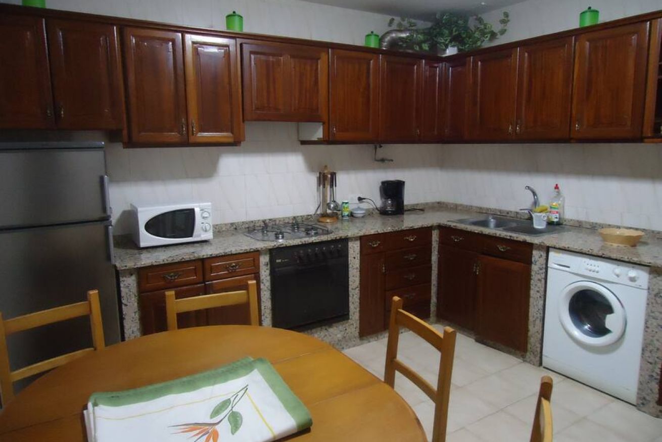 La cocina tiene lavadora, horno, nevera, microondas y todo el menaje necesario para cocinar, además de cafetera, tostadora, exprimidor, plancha, secador de pelo, etc.