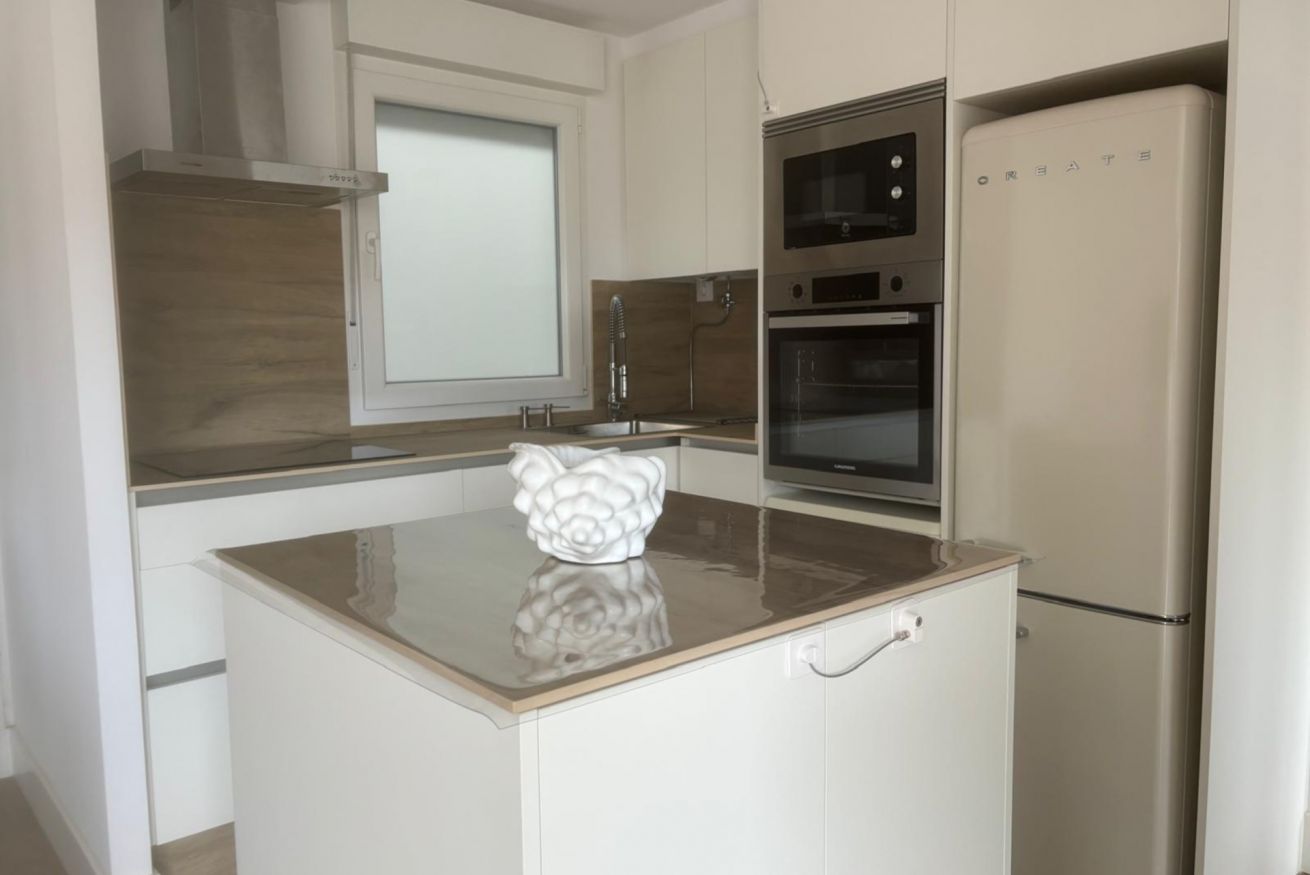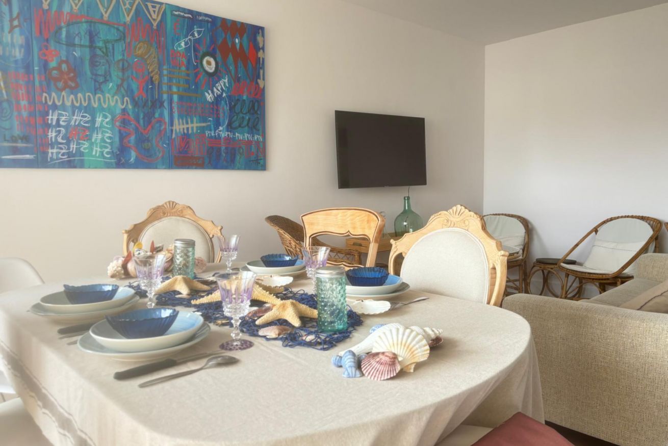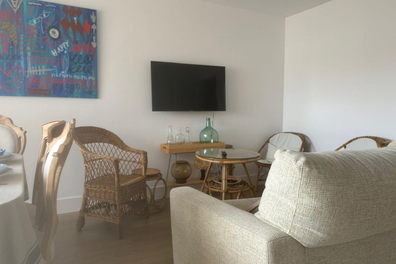 Salón comedor con televisión de pantalla plana y wifi, cocina y terraza. La cocina está equipado para una cómoda estancia.