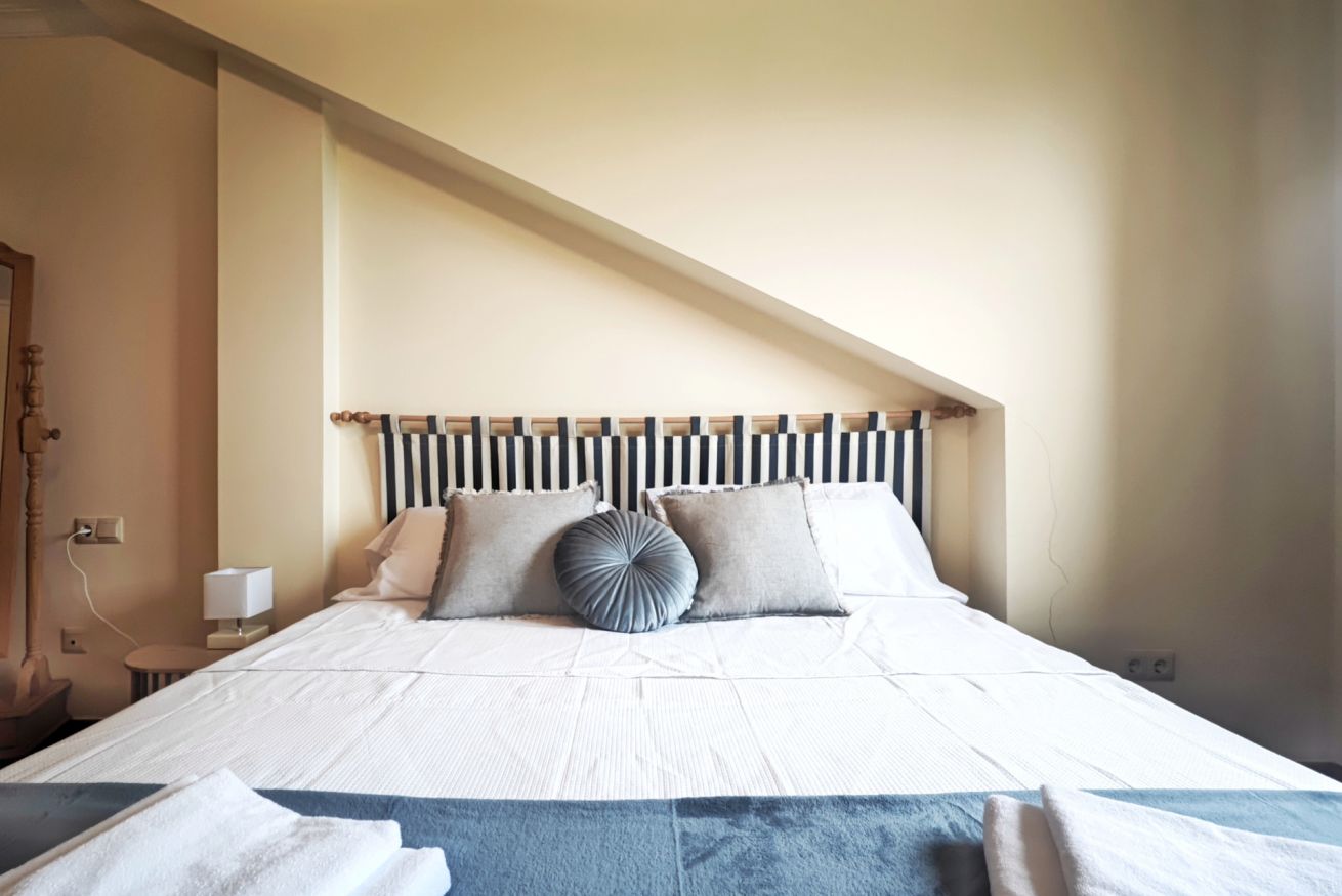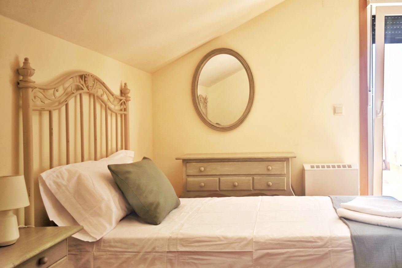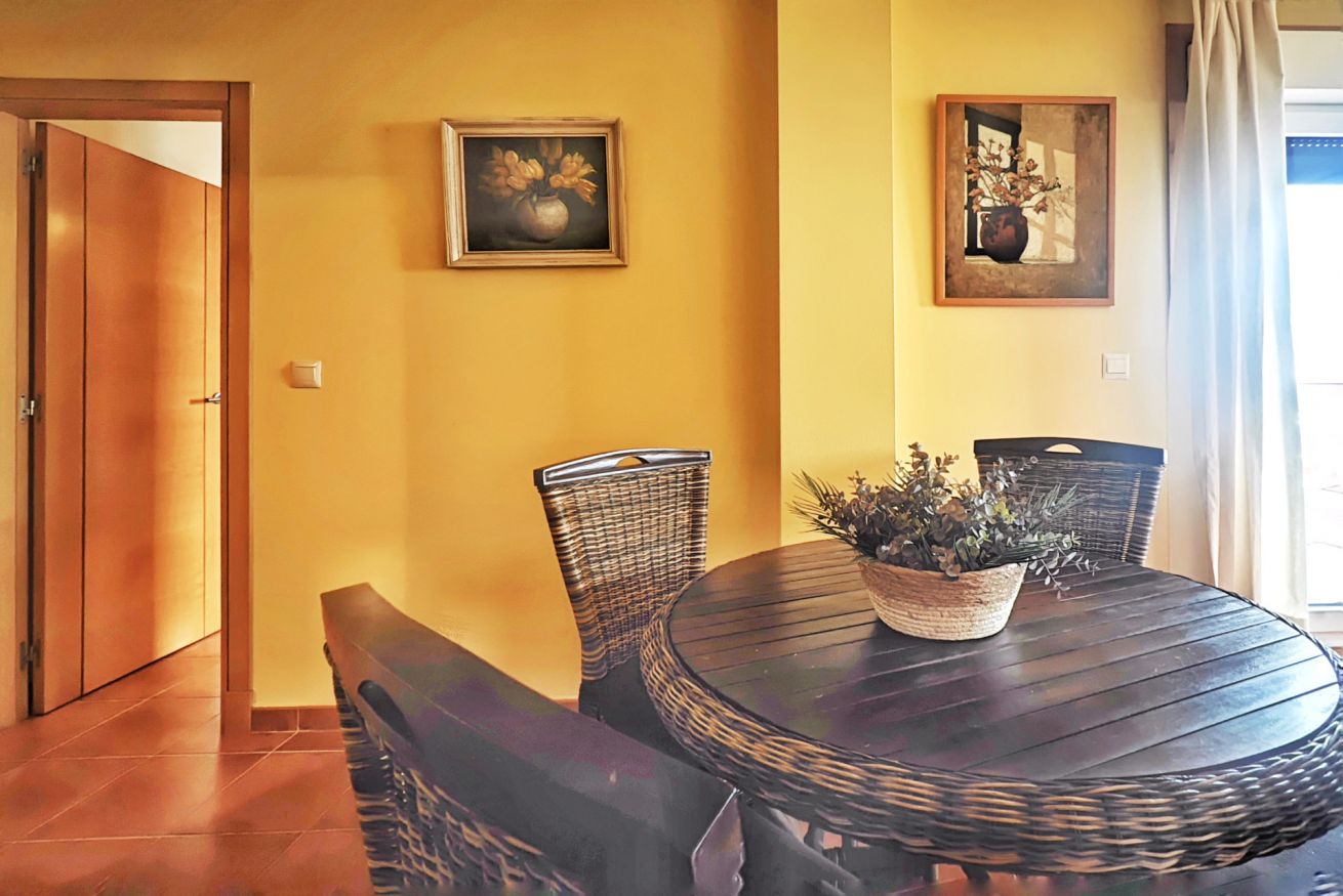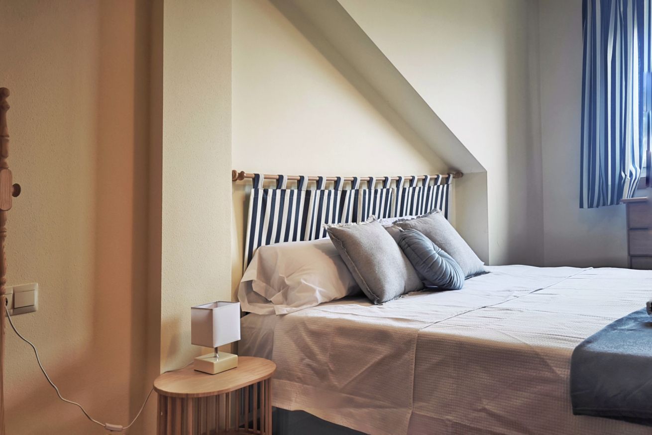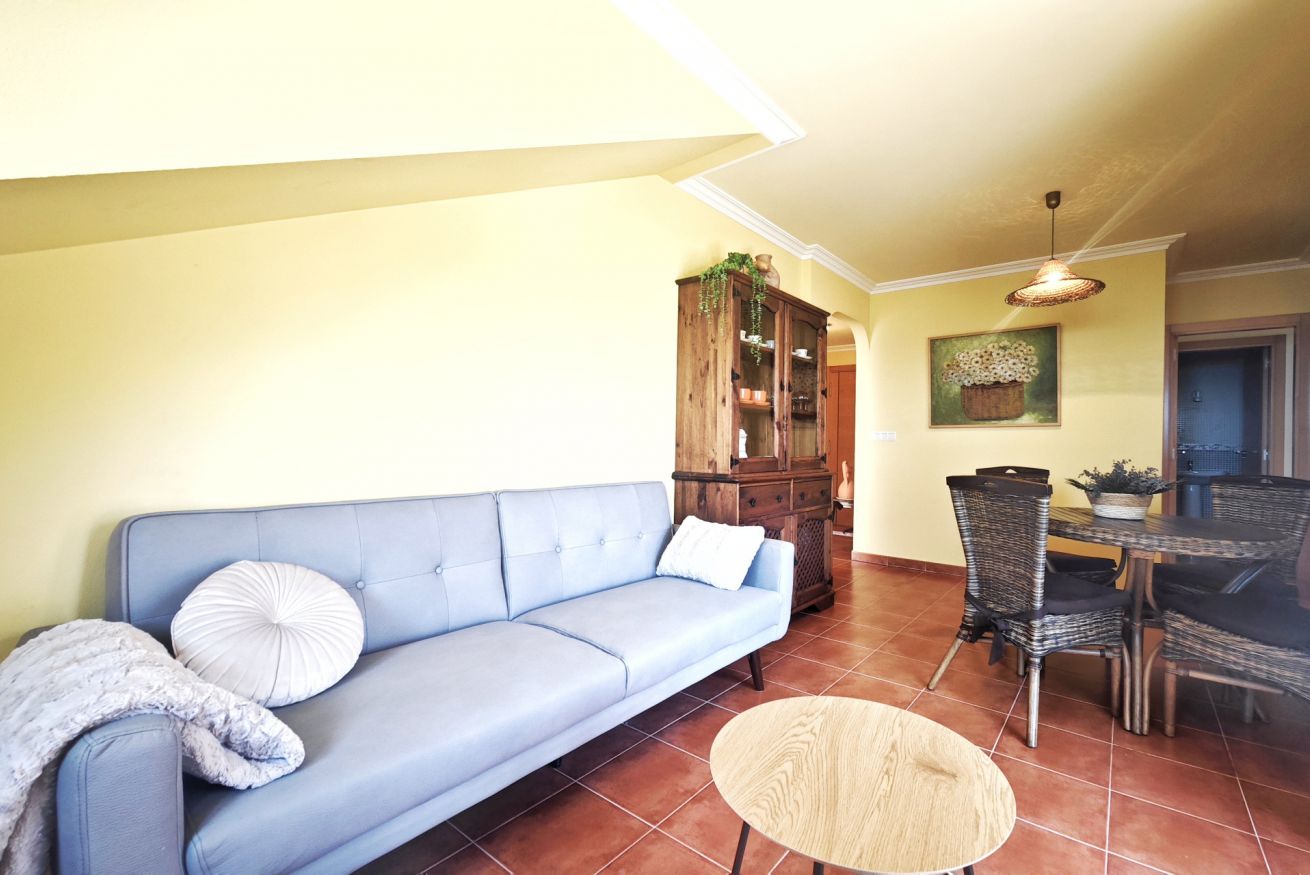 El interior del ático incluye un amplio salón-comedor que se conecta a la terraza a través de una puerta, una cocina completamente equipada y dos acogedores dormitorios: uno con una cama grande y el otro con dos camas individuales. Además, dispone de dos baños completos y una plaza de parking en el propio edificio.