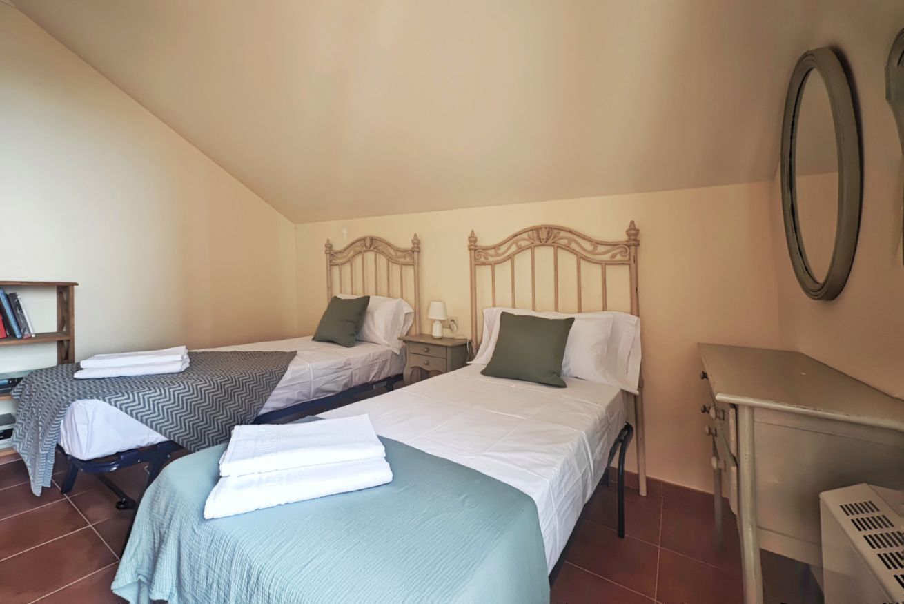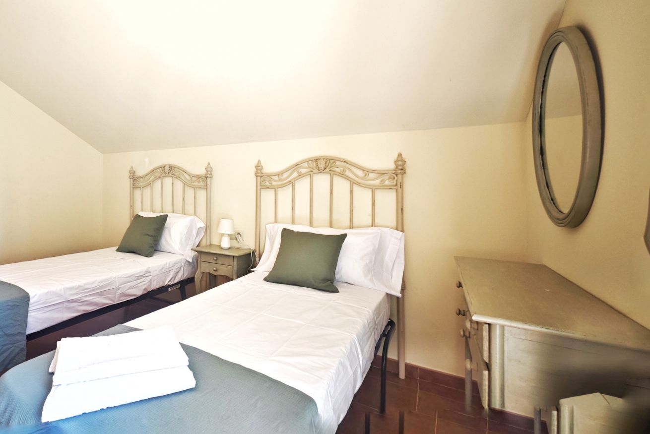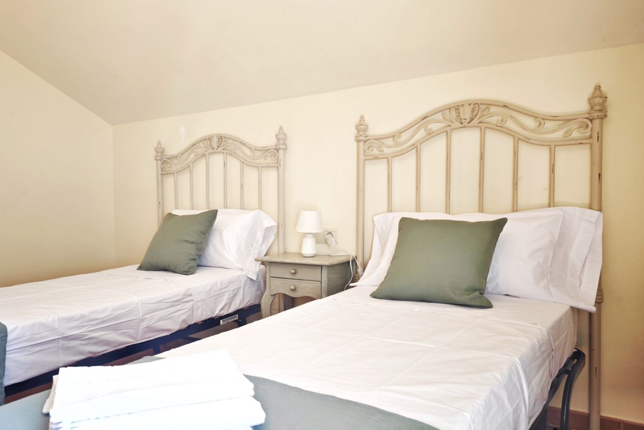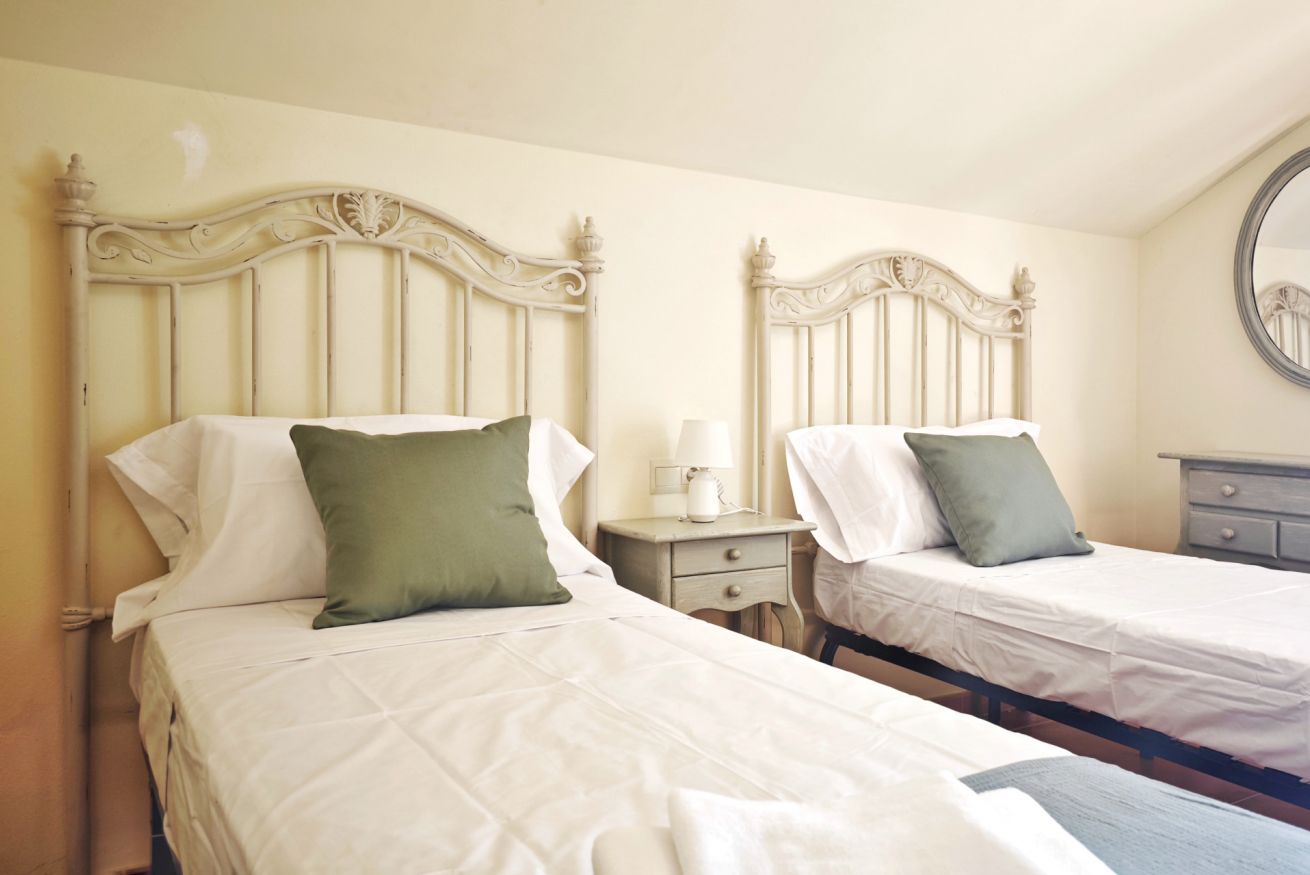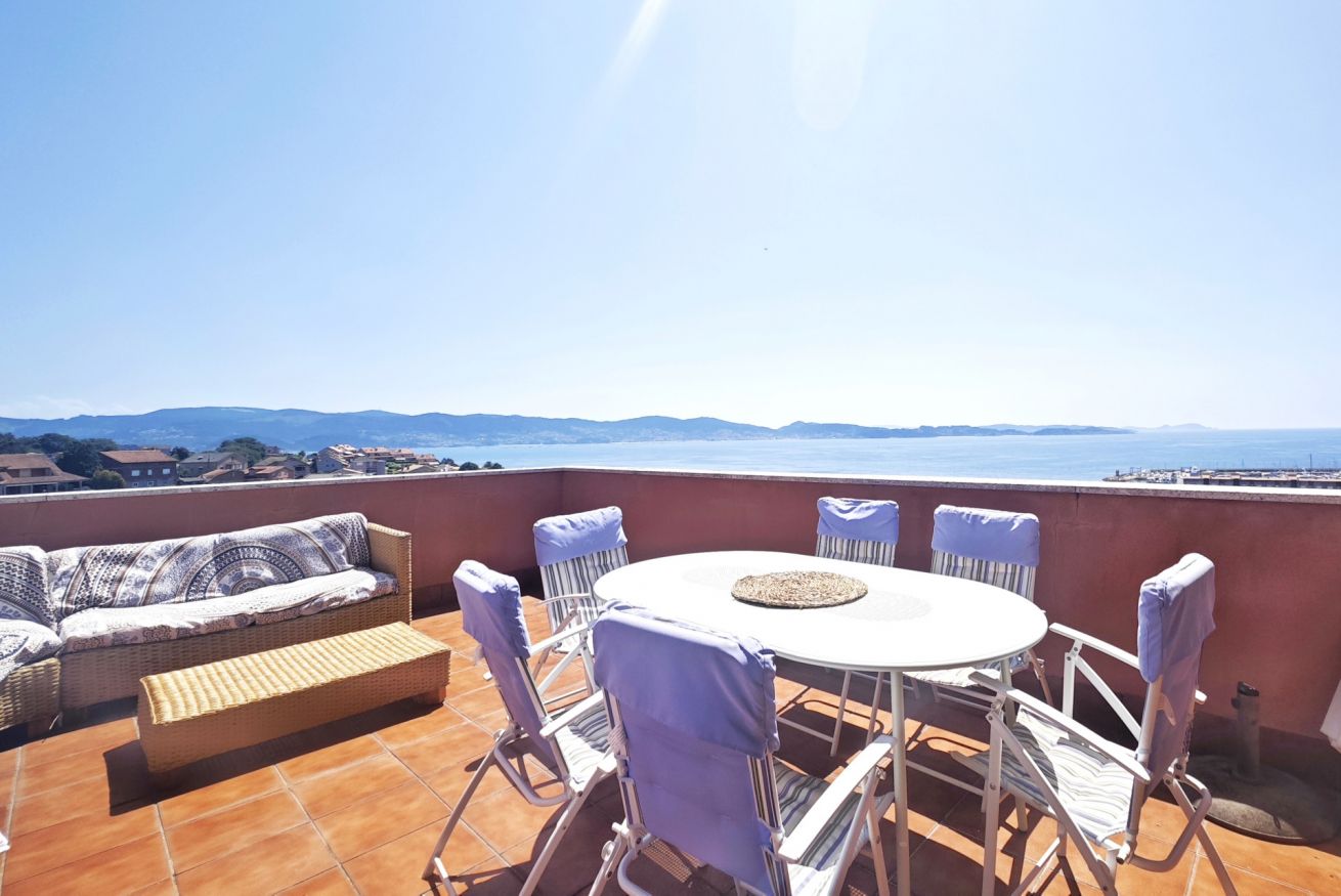 El interior del ático incluye un amplio salón-comedor que se conecta a la terraza a través de una puerta, una cocina completamente equipada y dos acogedores dormitorios: uno con una cama grande y el otro con dos camas individuales. Además, dispone de dos baños completos y una plaza de parking en el propio edificio.